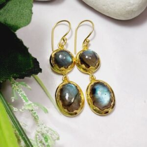 Brass Gold Plated Labradorite Gemstone Earring