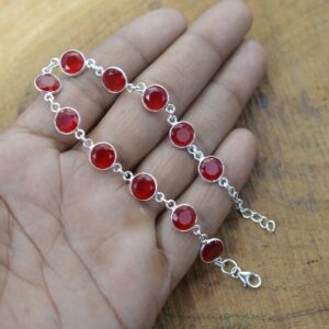 925 Sterling Silver Ruby Quartz Gemstone Bracelet